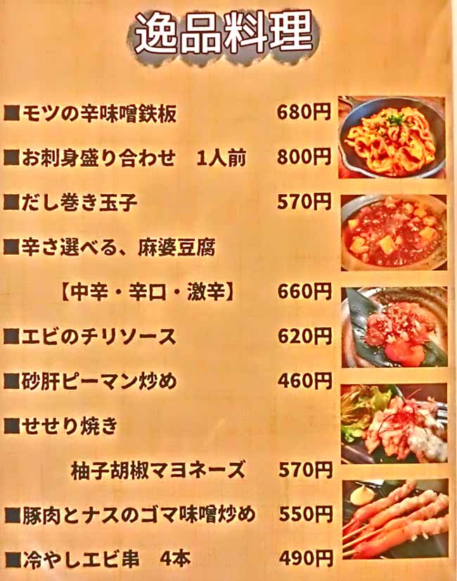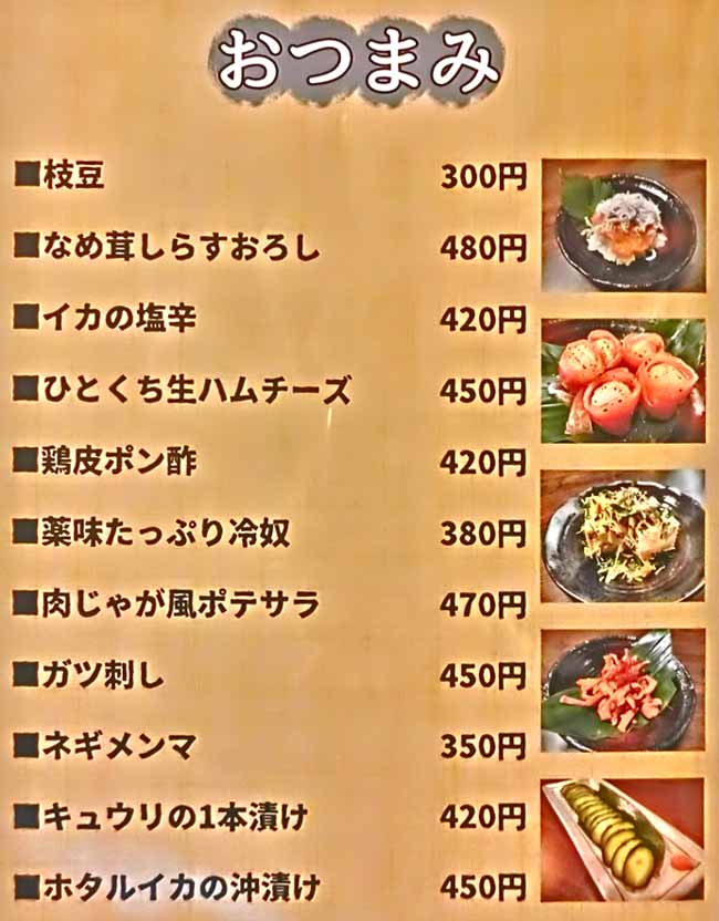 | お通し:350円 | |