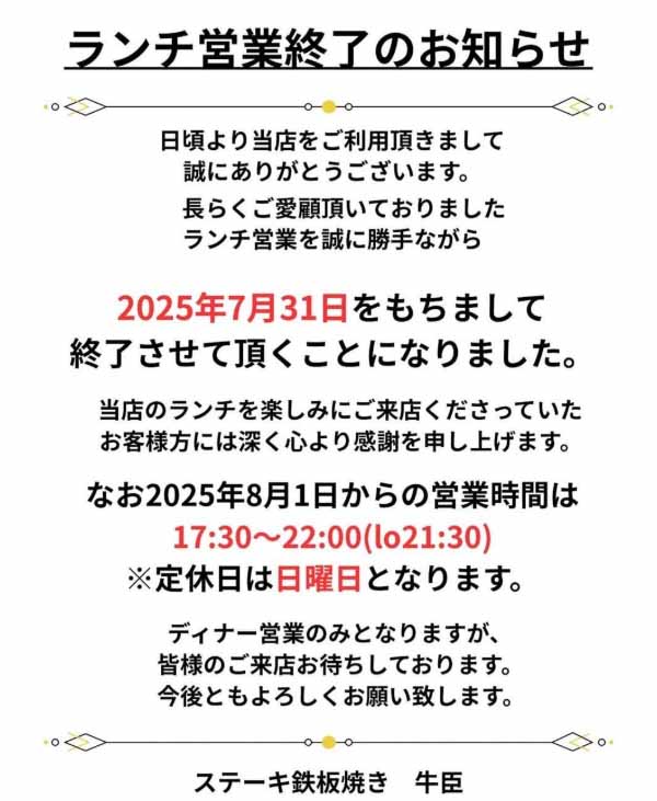 | ステーキ鉄板焼 牛臣 | ||||||||||||||||