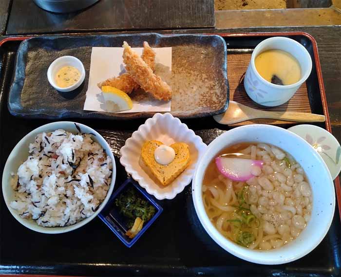 | なごみ定食/エビフライ・茶碗蒸し・卵焼き・梅とひじきのまぜご飯・ミニうどん:980円 | |||||||||||||