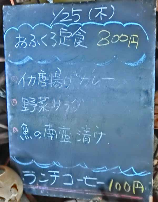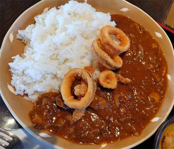 | おふくろ定食(日替り)イカ唐揚カレー/小鉢/サラダ:800円 | |||||||||||||