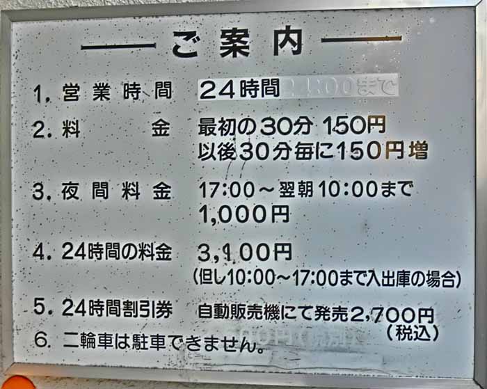 30分150円 17時〜10時:1000円