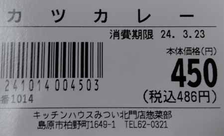| カツカレー:450円/486円 | |||||||||||||||||