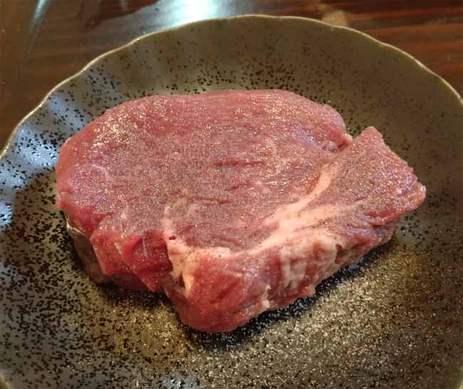 | 牛ヒレの厚切りステーキ:660円 秘伝のタレ漬けサガリ:590円 | |