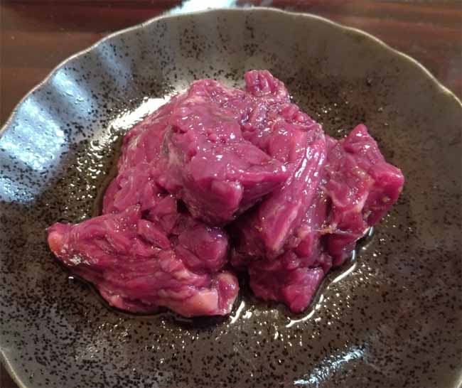 | お通し/牛たたき:300円×5 牛すじの赤味噌煮:430円 | |