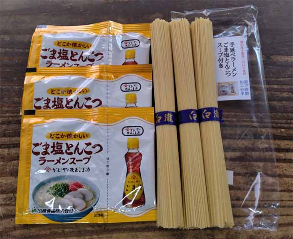 | 手延べラーメンごま塩とんこつスープ付き | |