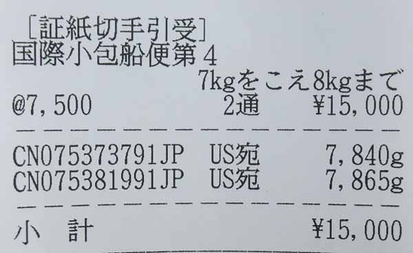 | アメリカまでの送料は「船便」で「7500円」也!(8kgまで) (約2ヶ月かかります) ![]() |