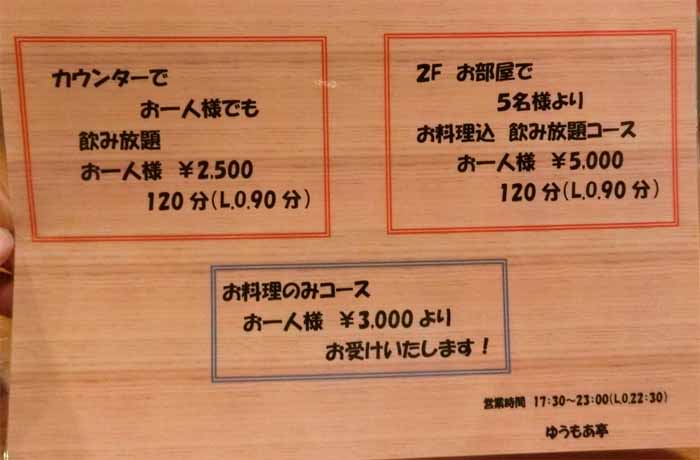 | 居酒屋「ゆうもあ亭」 | |||||||||||||||||