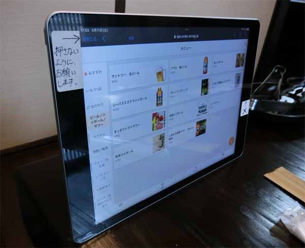 ![]() 注文はタブレット |