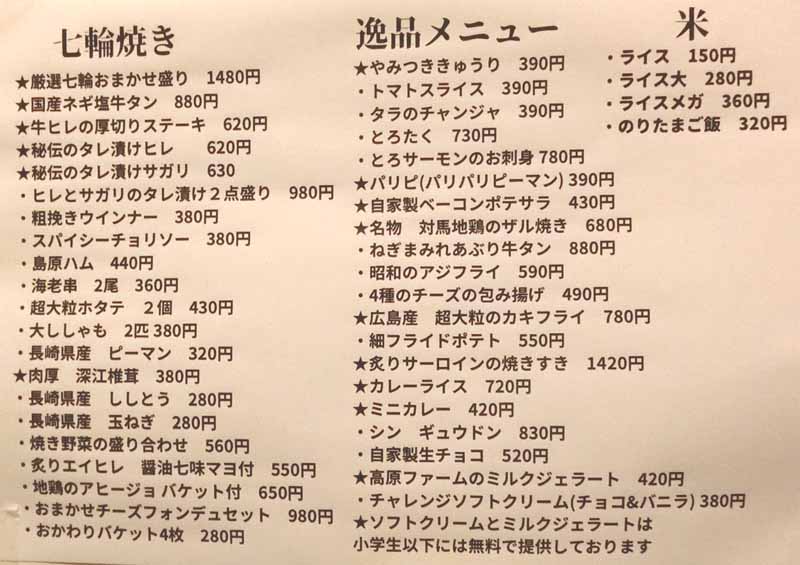 | 七輪おまかせ盛り合わせ:1480円 | |