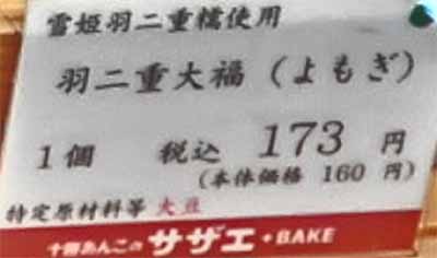雪姫羽二重橋/羽二重大福/よもぎ:160円/173円