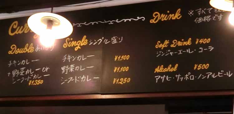 | あいがけ:チキンカレー + シーフードカレー:1350円 | |
