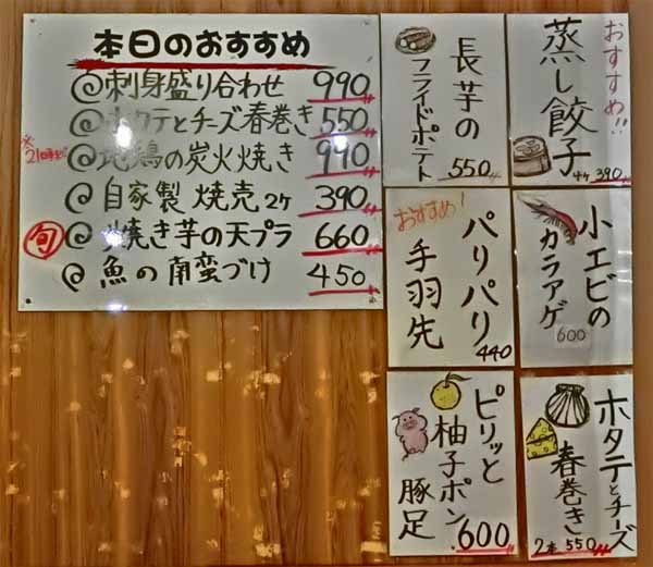 | 夜のお品書き 17:30〜23:30ころ |