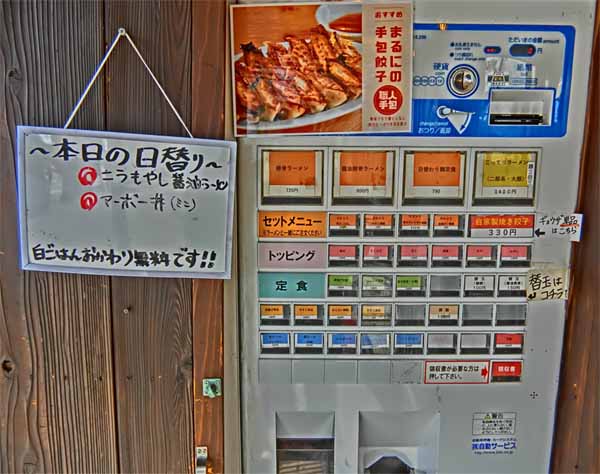 | お昼は「券売機」システム ラーメンセット、唐揚げ定食、アジフライ定食、餃子定食、各種トッピング ![]() |