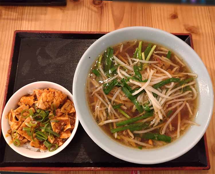 ニラもやし醤油ラーメン + ミニ麻婆丼![]() |