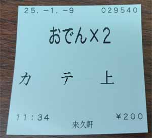 | おでん:100円×2 | |