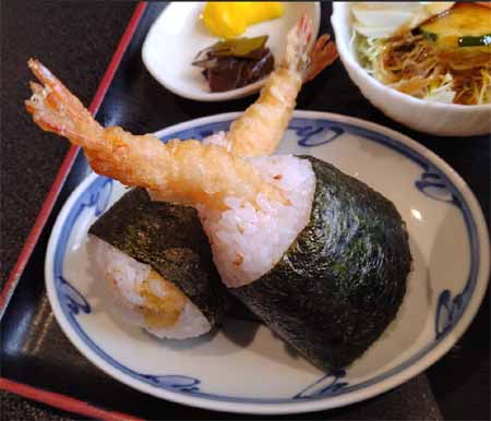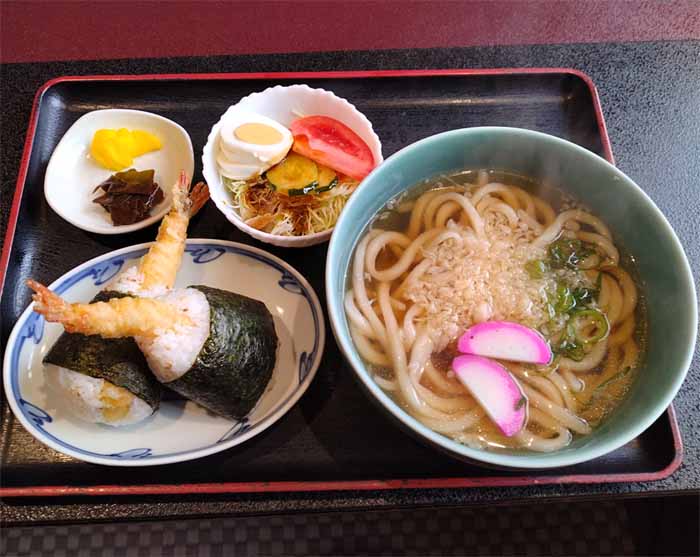 | 天むすセット:900円(税込) (うどん、天むす、サラダ、漬物) |