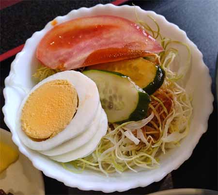 | うどん定食A:700円(税込) (うどん、とりめし、サラダ、漬物) |
