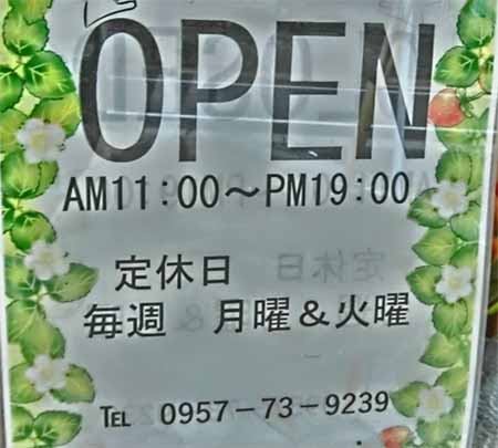 | 島原市柏野町1650-3 電話0957-73-9239 11:00〜19:00 休:月曜・火曜 |
