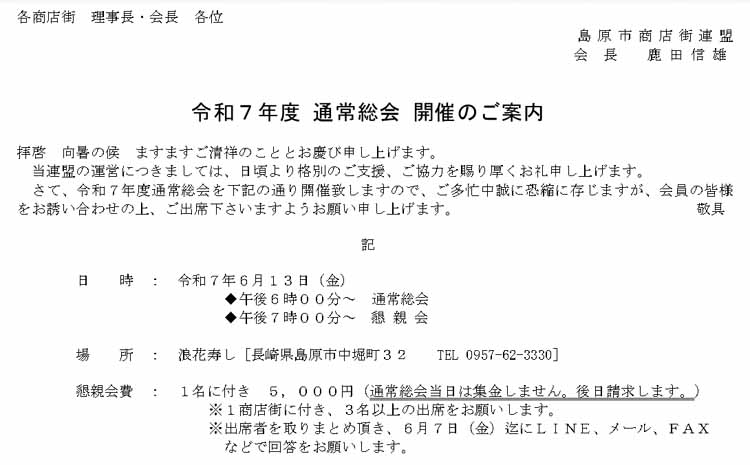 | 島原市商店街連盟総会 | |