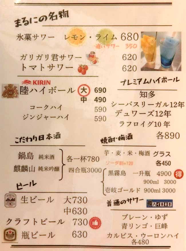 | 生ビール600円 トマトサワー:600円 ガリガリ君サワー:600円 | |