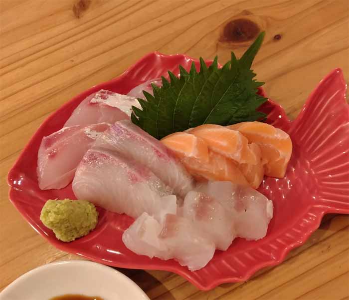 | 刺身盛:990円 タイゴマ刺:550円 | |
