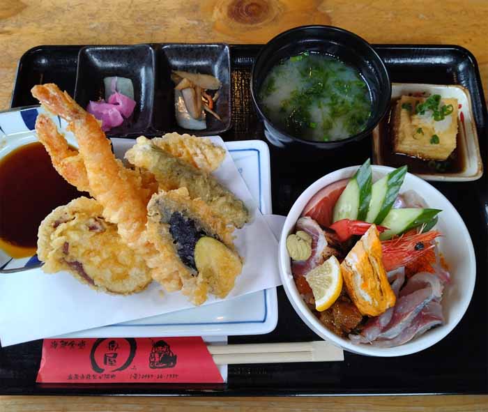 | ミニ海鮮丼と天ぷら定食:1680円 | |