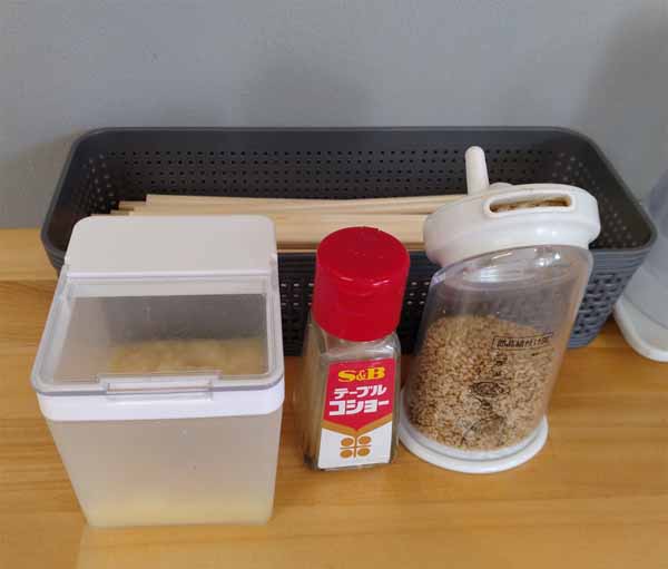 卓上調味料:ゴマ、にんにく、胡椒 |