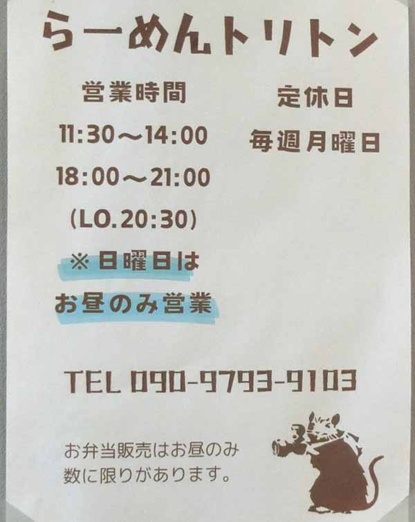 | 南島原市西有家町須川6-8 電話:090-9793-9103 11:30〜14:00/18:00〜-L.O.20:30 休:月曜/日曜夜 https://www.instagram.com/ra_men.toriton/ |