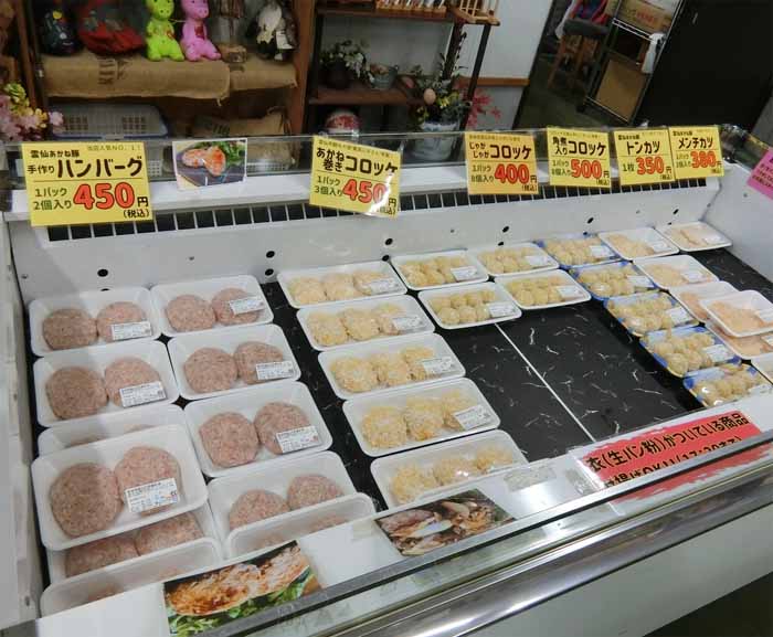 | 「じゃがじゃがコロッケ/8個:400円」 「メンチカツ/2枚:380円」「とんかつ:350円」「ハンバーグ/2個:450円」 等など ![]() |