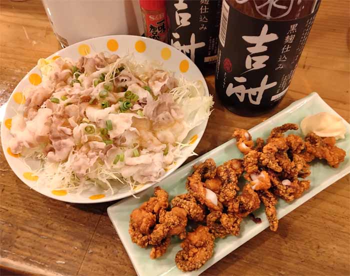 | 芋焼酎「吉酎」:2700円 生ビール:550円 ハイボール:500円 | |