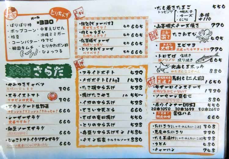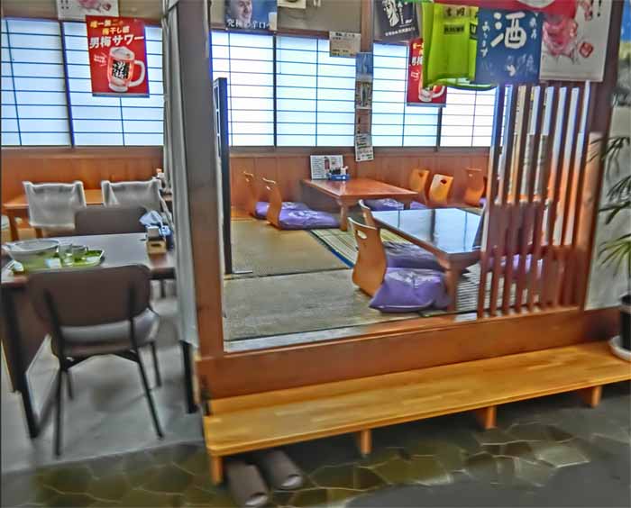 ![]() カウンター×5席、2人テーブル×2席。4人テーブル×2席、小上がり4人テーブル×4席 |