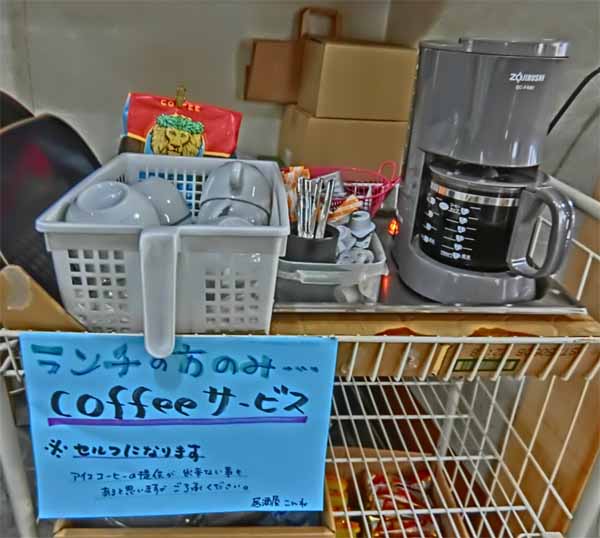 ![]() ランチサービス:セルフコーヒー |