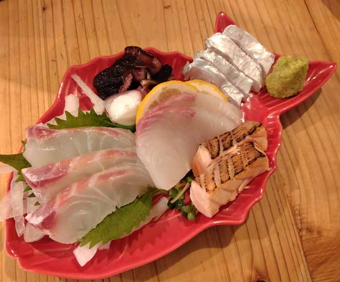 | 刺身盛:990円 タイゴマ刺:550円 | |