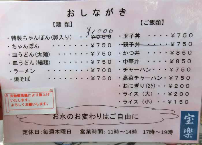 | ちゃんぽん:750円 | |||||||||||||||||||||