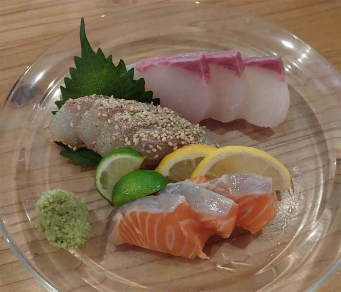 | 刺身盛:990円 タイゴマ刺:550円 | |