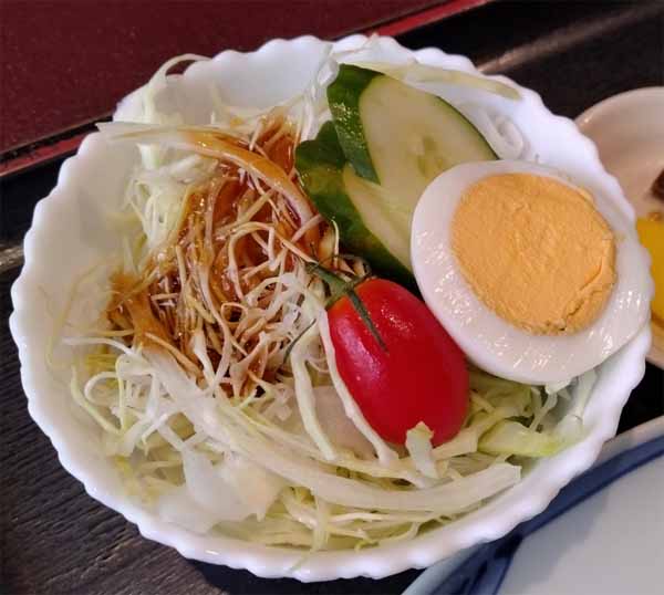 | カツ丼セット:950円(税込) (うどん、カツ丼、サラダ、漬物) |