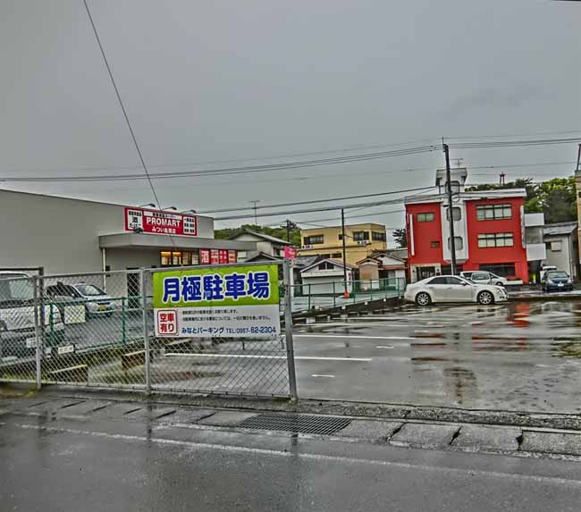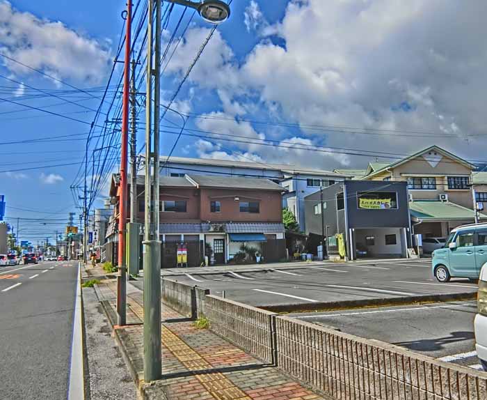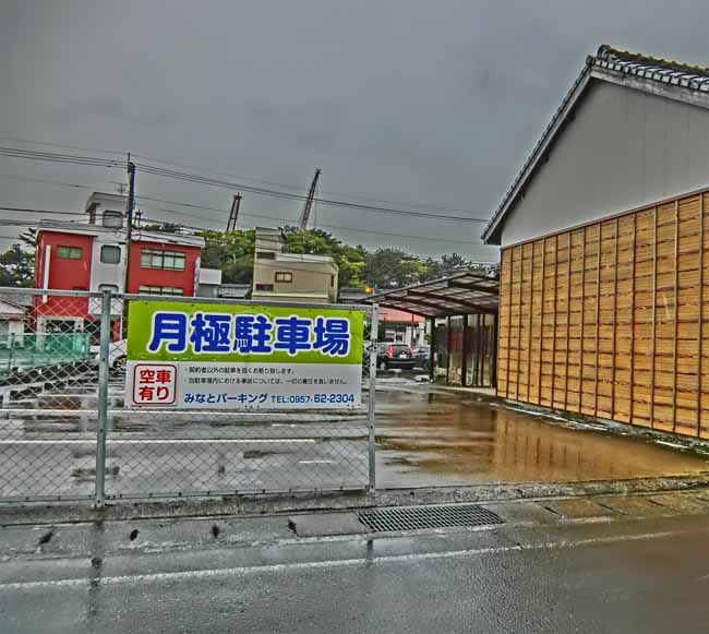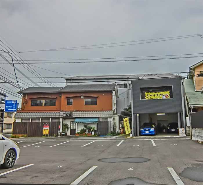 | 黒っぽい四角の建物/1階P2台(今は花輪で1台) 山側の通りから入る「みなと駐車場」P4番5番 (店前のPではなく山側道路から回り込むPなのでご注意) ![]() |