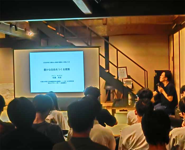 | ゲスト 佐藤 布武(名城大学准教授 https://wwwra.meijo-u.ac.jp/faculty1/1064/ https://www.nobusato.com/projects-2 藪谷 祐介(富山大学講師 https://yabutani-lab.com/ オブザーバー:石塚 直登(九州工業大学 助教 https://researchmap.jp/N-ishizuka?lang=ja モデレーター:佐々木翔さん 空間設計を通して地域に根ざす営みを支える建築家 https://www.instagram.com/sasakisho0906/ 建築設計事務所 インターメディア iINTERMEDIA/水脈 https://intermedia-co.jp/ 水脈 https://mio-shimabara.com/ 故郷へUターンで家業を受け継ぐ。 佐々木翔さんが仕掛ける、土地をミカタにする建築設計事務所とは https://sotokoto-online.jp/work/3014 |