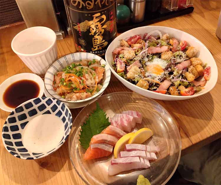 | 刺身盛:990円 タイゴマ刺:550円 | |