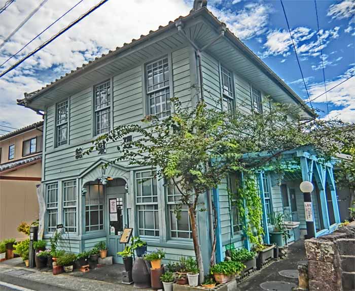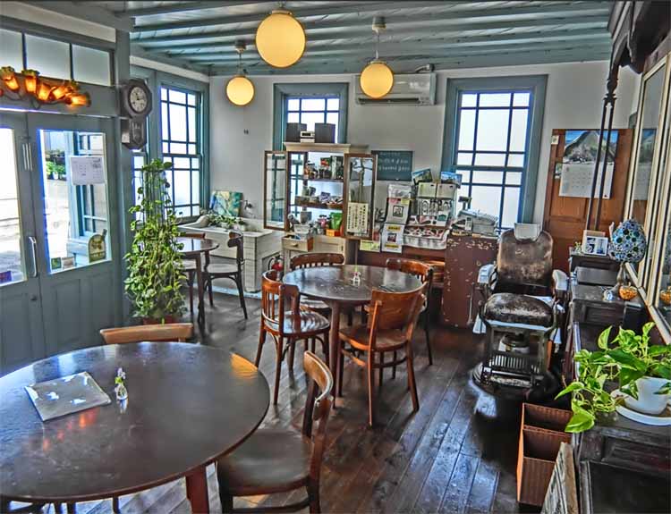 | 大正時代の理髪館を活用したレトロなカフェ「青い理髪館/工房モモ」さん 島原城の近く、海側(東側)をチョット入ったトコロ チョット離れたところに専用駐車場もアリ(入口に地図が有) 木造二階建てのレトロな建物で「青い理髪館」の通り「青(水色)」 一階が喫茶室で、カウンター4席、2人テーブル×1席、4人テーブル×2席 二階は、レンタルスペース やさしいママさんと明るい娘さんの親子で切り盛りされてます 島原散策の途中で、ホッと一息できる隠れ家的ポイントですネ |