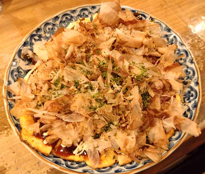 | ちゃんぽん焼き:720円 *忙しい時は不可 小麦粉を使わず、ちゃんぽん麺を入れたお好み焼き |