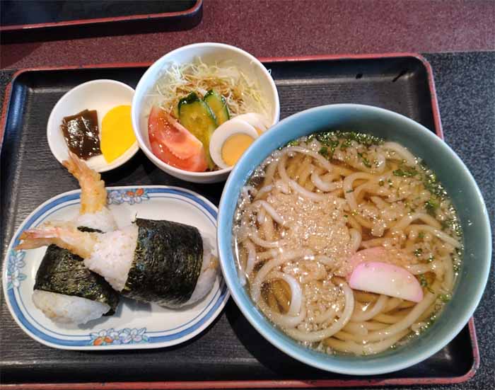 | 天むすセット:900円(税込) (うどん、天むす、サラダ、漬物) |