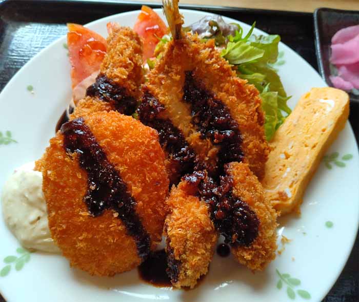 海老フライ、牡蠣フライ×2、アジフライ、コロッケ、玉子焼![]() |