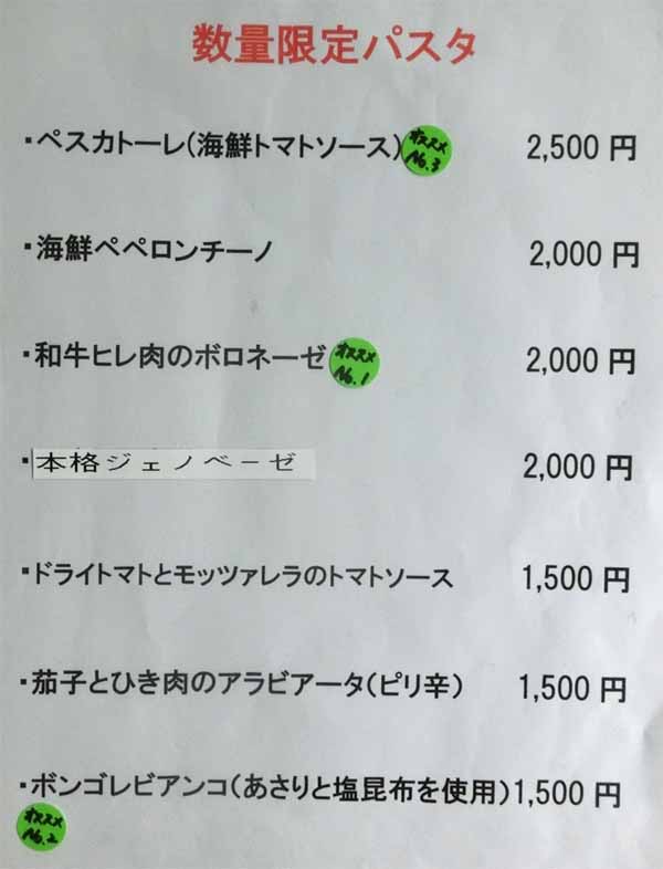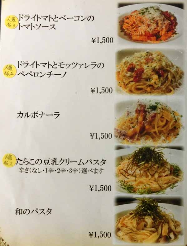 | パスタ/トマトソース:1500円 | ||||||||||||||||