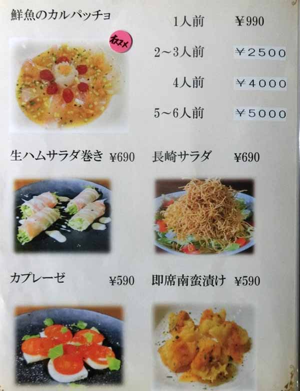 | 鮮魚のカルパッチョ/2-3人前:2500円 | ||||||||||||||||