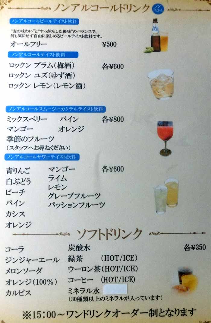 | 青りんご:600円 黒霧ソーダ:600円 グレープフルーツ:600円 生ビール:600円 パッションフルーツ:600円 | ||||||||||||||||