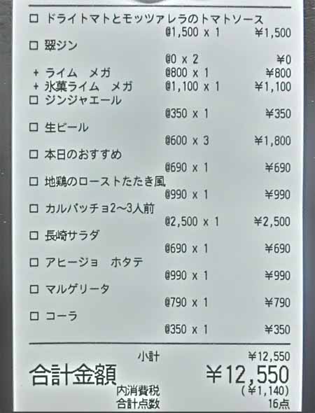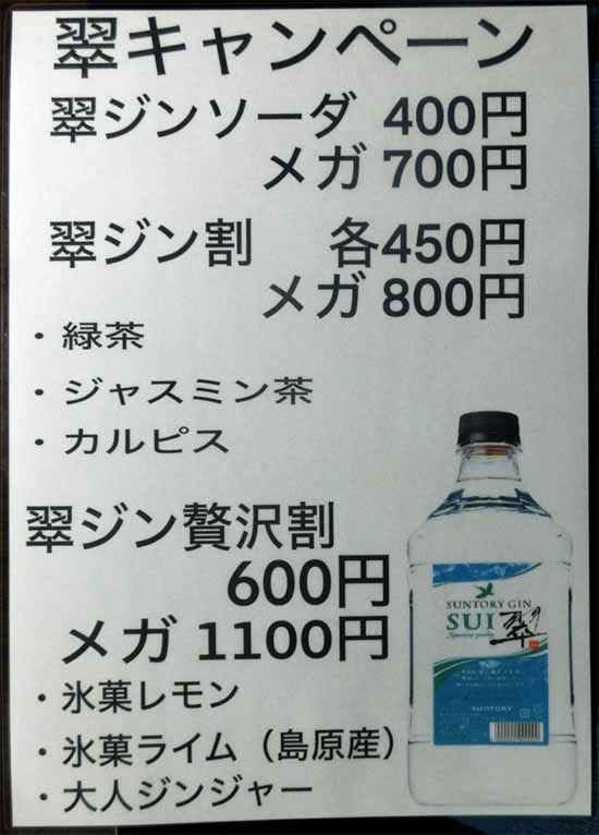 | 翠ジンメガ:1100円 生ビール:600円 | ||||||||||||||||