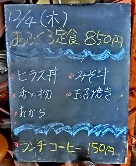 | おふくろ定食(日替り)ヒラスづけ丼、いわし生姜煮 | |||||||||||||||||||||