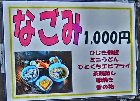 | (冬期)なごみ定食/エビフライ・茶碗蒸し・卵焼き・梅とひじきのまぜご飯・ミニうどん:1000円 | |||||||||||||||||||||