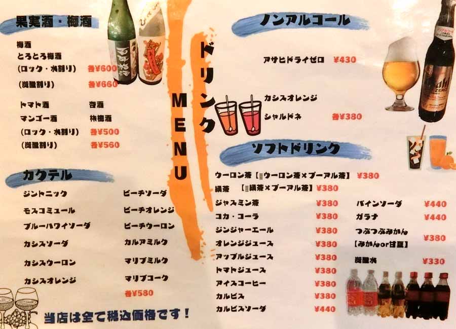 | 生ビール:600円 ハイボール:520円 | |